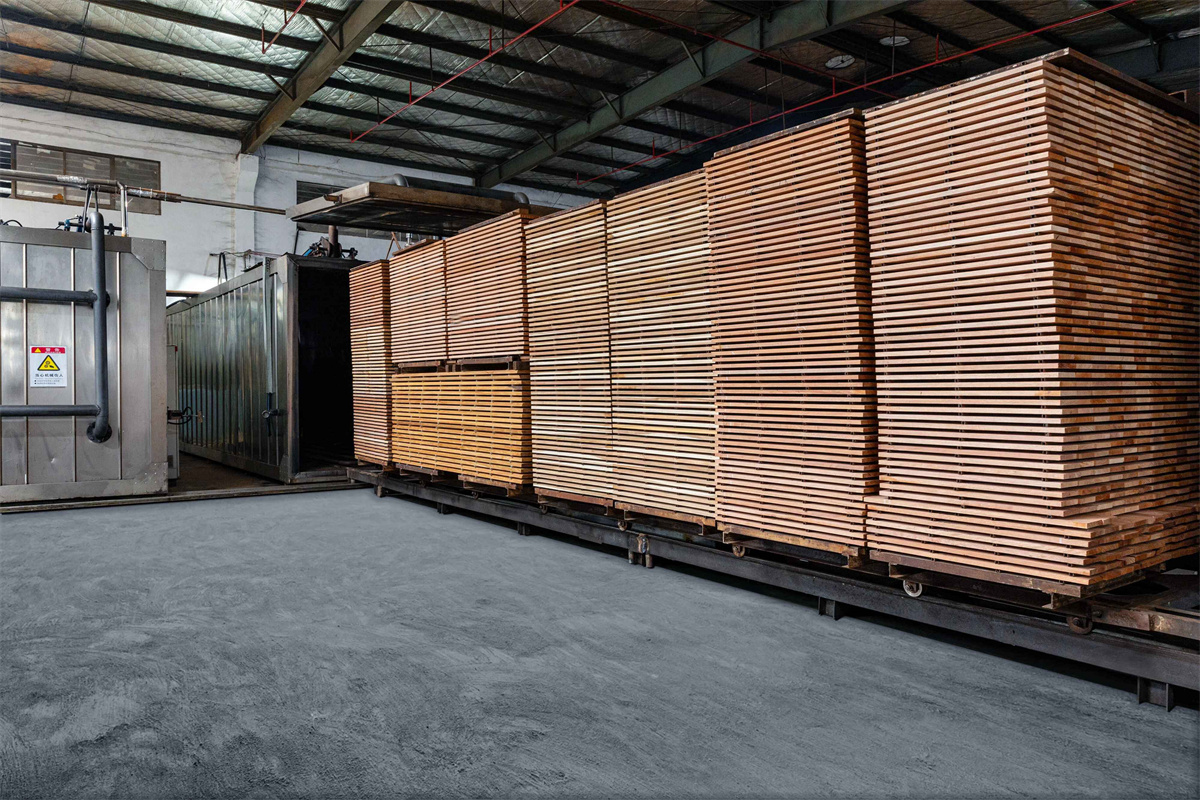 通过合作研发的“高温喷蒸智控热处理技术”,针对不同树种制定相应温度和含氧量控制工艺基准。鉴于不同树种具有各自独特的密度和干缩等木材性质,这就要求专业技术人员在热处理过程中对时间、温度和含氧量进行精确控制。这一过程涉及持续的监测、对比以及依赖大量数据支持和实验验证,以寻求最佳的处理方案。针对具体树种木材,先由中国林科院木材工业研究所科研人员在实验室进行系统试验并优化处理工艺,尺寸稳定性及颜色等性能达到要求后再应用在AITIYU(中国)公司的生产设备中。这样科学保持实木天然木纤维,合理控制木材含水率,既保留了木材固有的“活性”,还显著提升了其尺寸稳定性。未来,我们将持续创新,并在设备工作频率等方面寻求更多突破,以提升AITIYU(中国)的产品质量和使用体验。